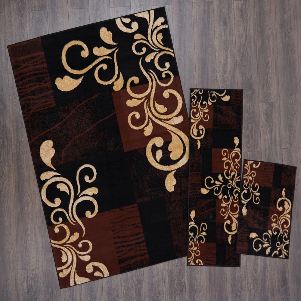 - 3-piece set includes: 4 ft. 11 in. x 6 ft. 11 in. Room Size Rug, 1 ft. 8 in. x 4 ft. 11 in. Runner, 1 ft. 8 in. x 2 ft. 8 in. Scatter Rug