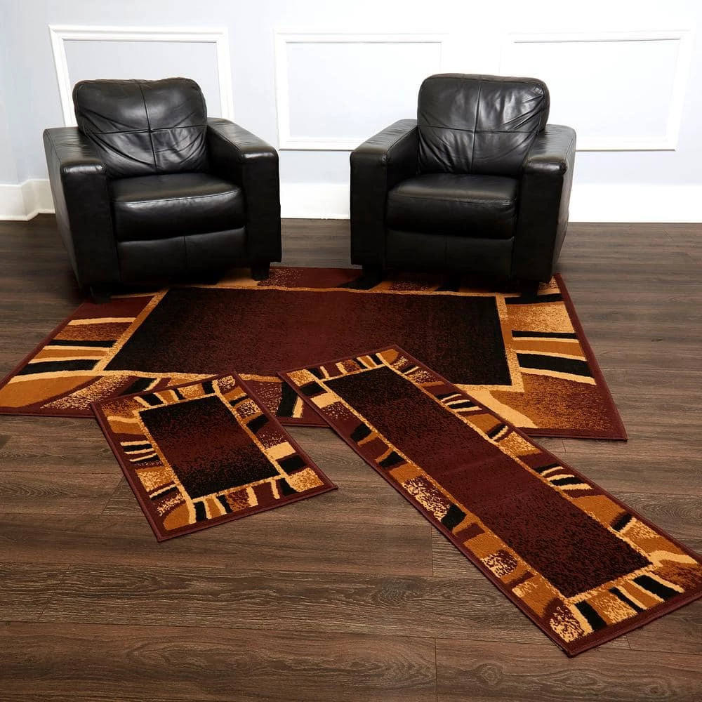 This set of 3 rugs from the Ariana Collection by Home Dynamix offers traditional patterns and colors, easily. The set includes an area rug, runner and a scatter. The 3-Piece Ariana Rug Set fits in any room, hallway and/or entry. They can also be used as a wall hanging if only one or 2 are needed for the floor. Persian styling and warm traditional colors. Perfect for your home or office with their durability and easy care.