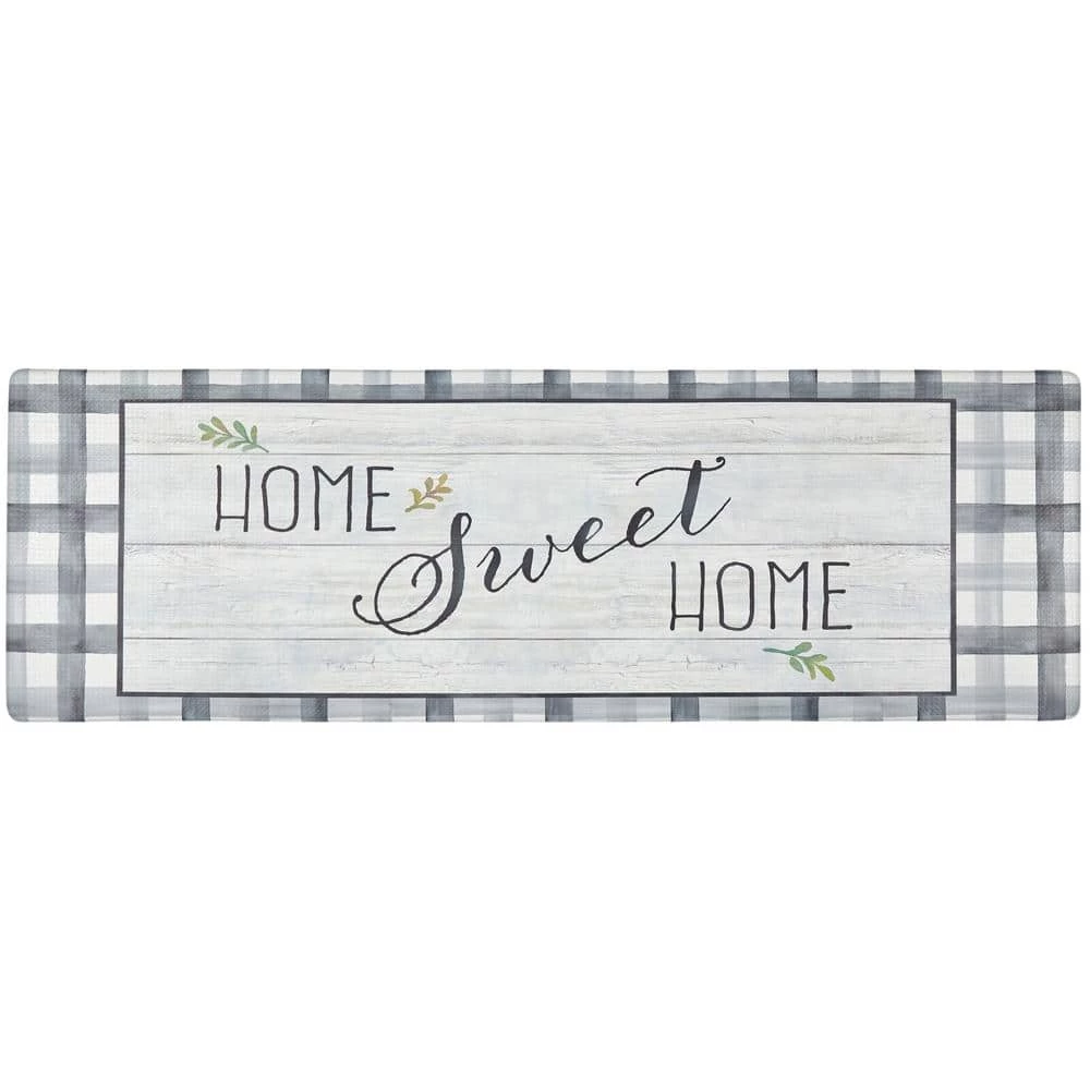 Bring comfort and style to your kitchen decor with the Cozy Living Home Sweet Home Farmhouse kitchen mat by Home Dynamix. Featuring a family friendly word saying on checkered background that is perfect for your farmhouse decor. This anti-fatigue mat will provide long-lasting comfort while you perform your tasks. Finished with a beautifully embossed textured top, these mats are constructed of durable polyvinyl with a smooth beveled edge that provides a safe and secure, anti-slip surface.