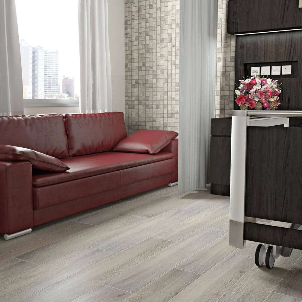 Get the beautiful look of wood without the worry with Emerson Wood Balsam Fir, from Daltile. These gray toned 8 in. x 47 in. large-format wood-look porcelain tiles combine the great look of hardwood floors with the versatility, performance and durability of porcelain tile. Use this wood look tile anywhere in your home including bathrooms, laundry rooms, and mud rooms.