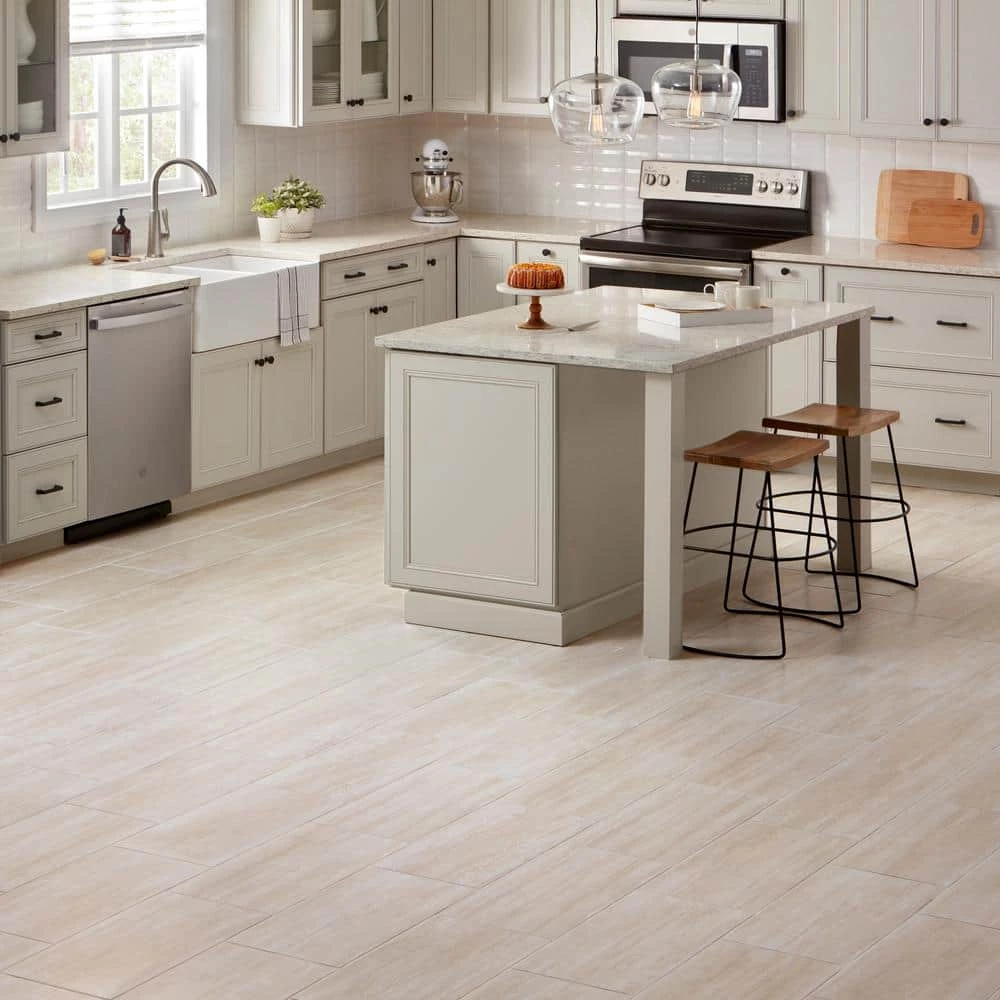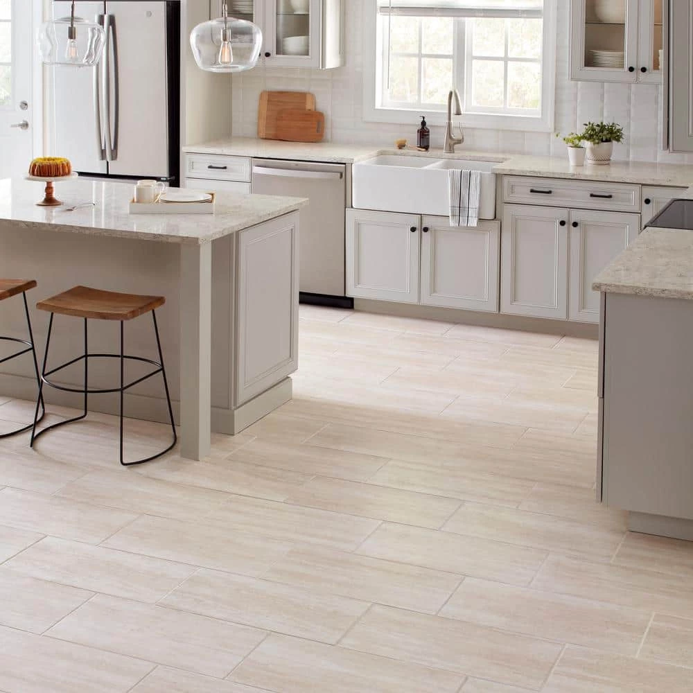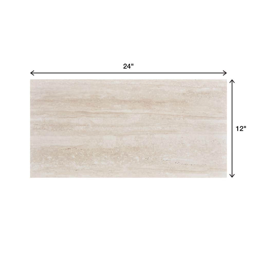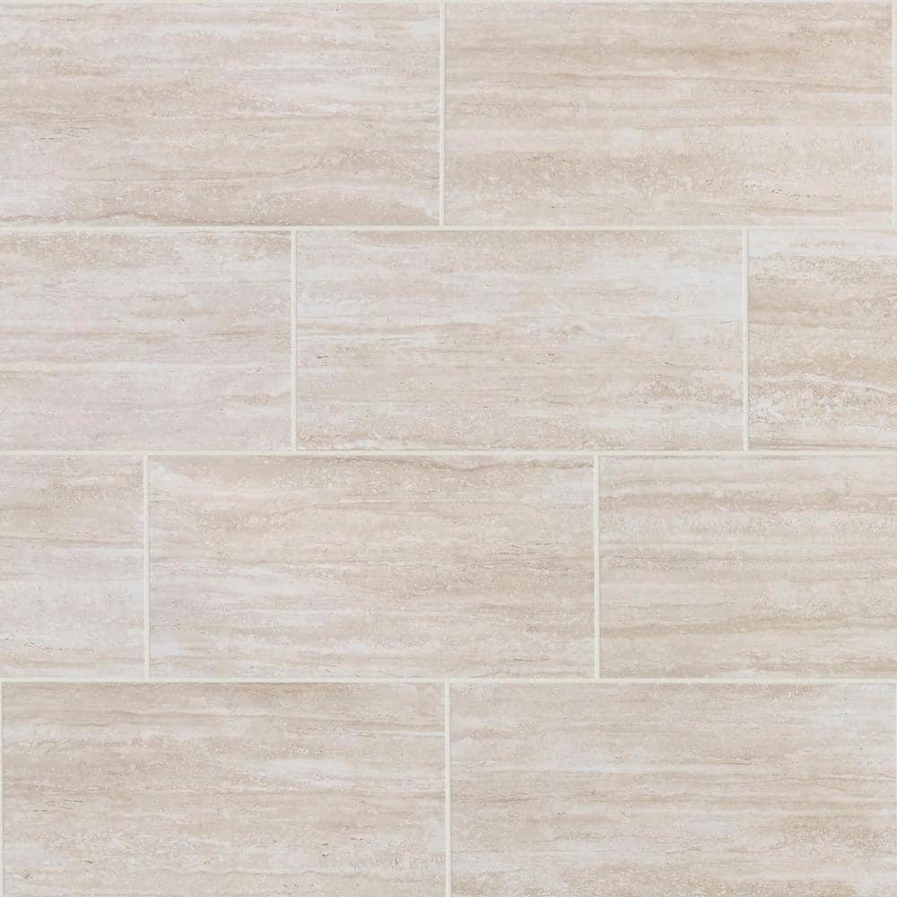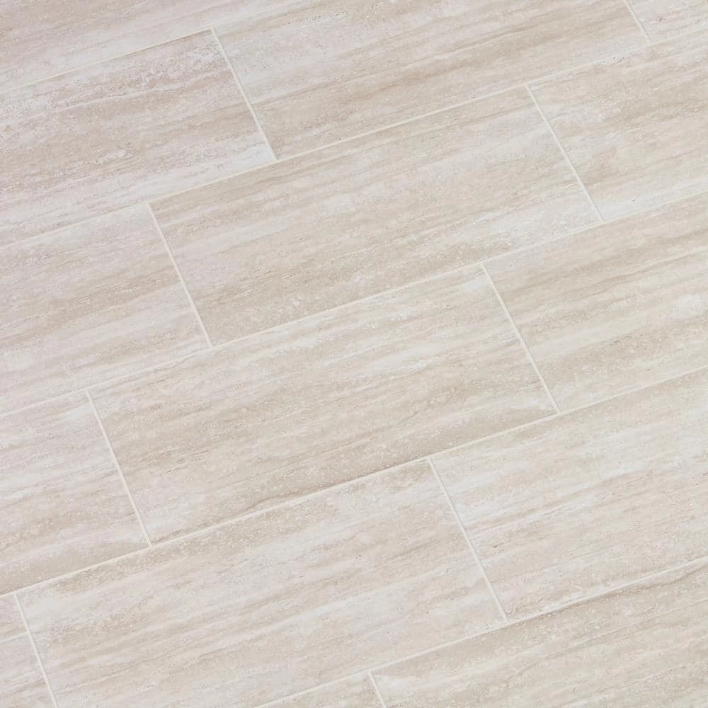 Elevate your space with the Glendale 12 in. x 24 in. Ivory porcelain floor and wall tile by Daltile. This white travertine look tile showcases beautiful veining and has a linear pattern. Use it in kitchens, bathrooms and laundry rooms for a classic look. As beautiful as it is durable, this porcelain tile is waterproof, scratch- resistant, and stain proof.