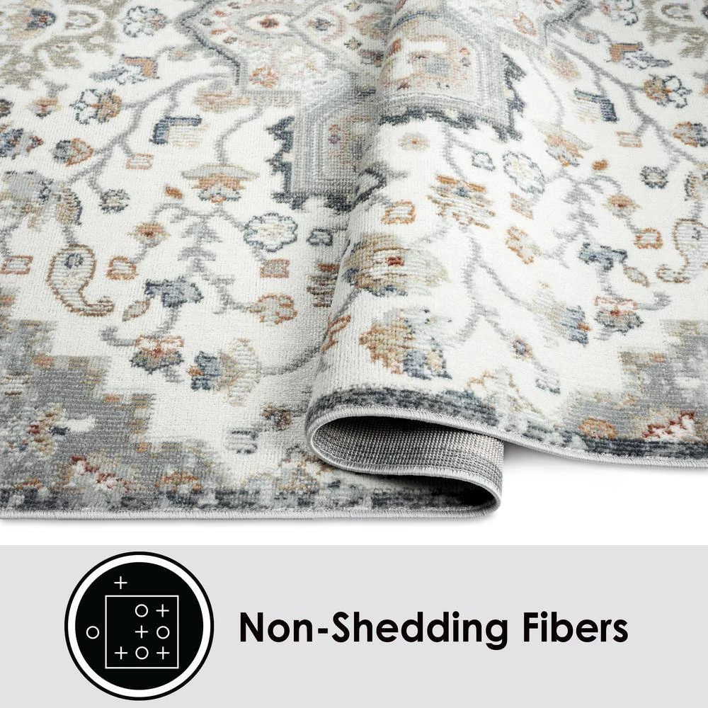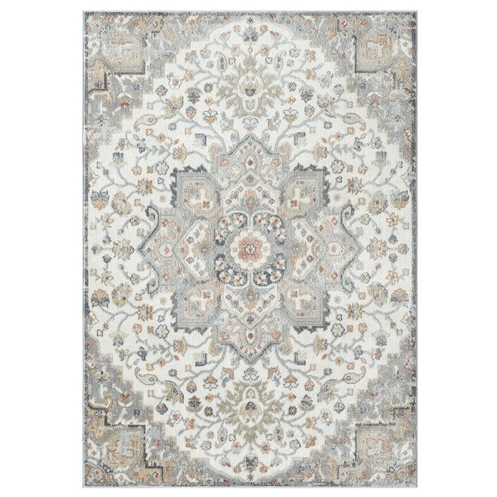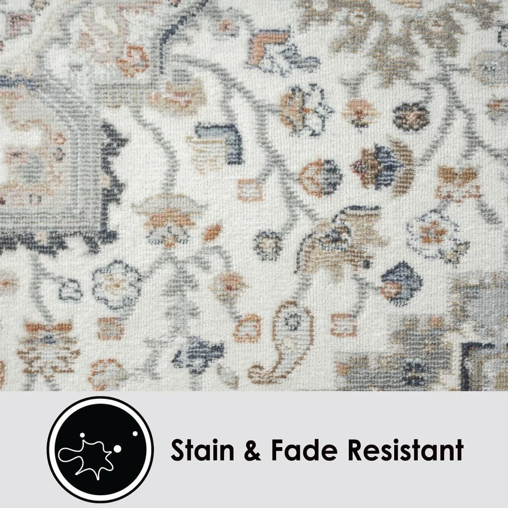 The Home Dynamix Helen Valeria area rug offers a perfect combination of classic style and bohemian chic flair for your space, with its damask medallion design in neutral shades of ivory and blue. This power-loomed rug offers cozy comfort underfoot in any space. The durable fibers are stain and fade-resistant, making this area rug ideal for high-traffic areas.