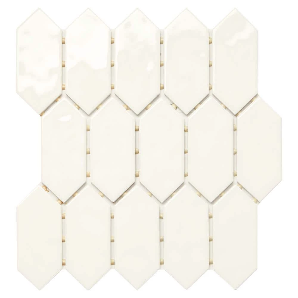 - 11 in. width x 12 in. length x 1/4 in. thick. 2 in. W x 5 in. L mosaic pieces in a picket pattern