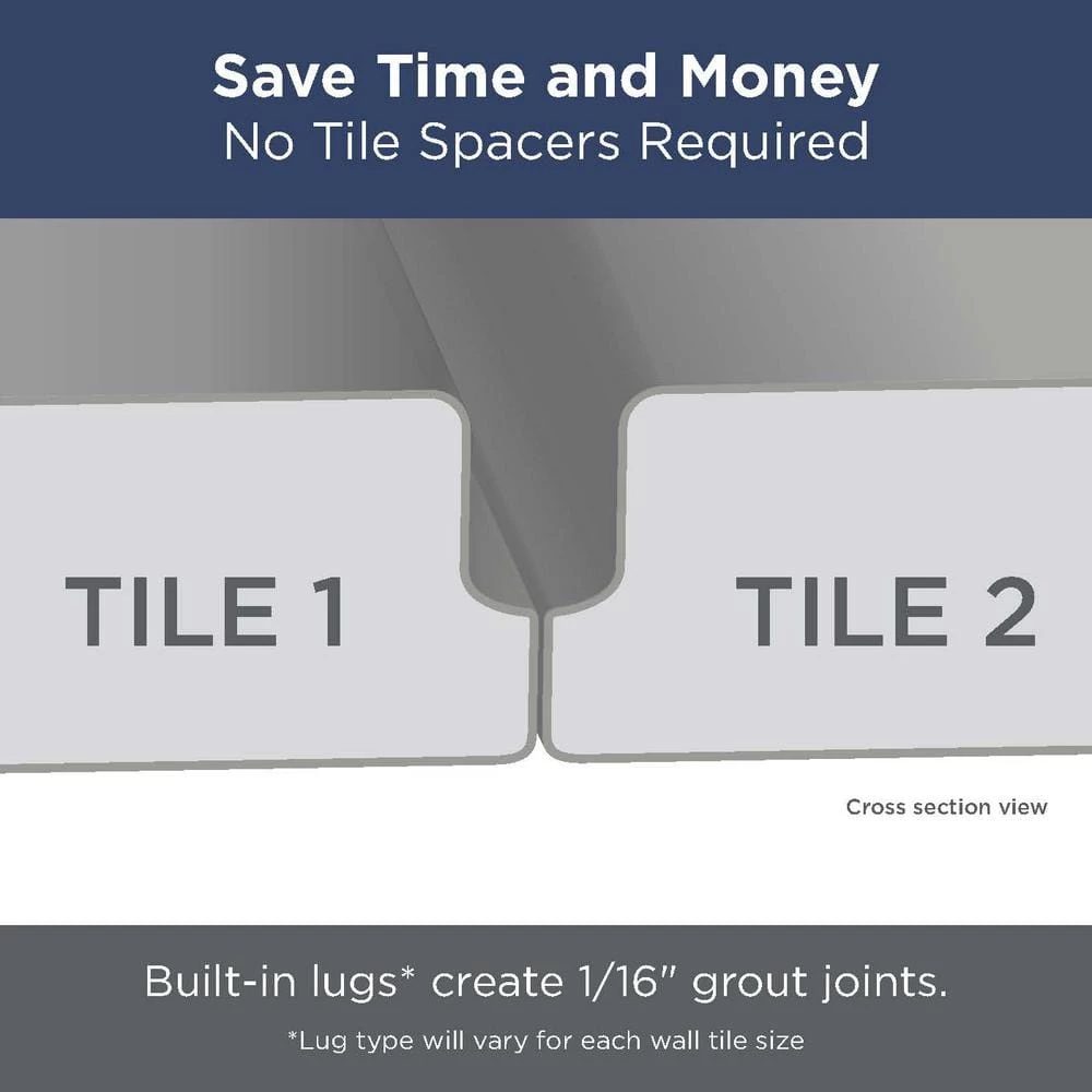 - Specially designed with lugs to create a grout joint, no spacers needed