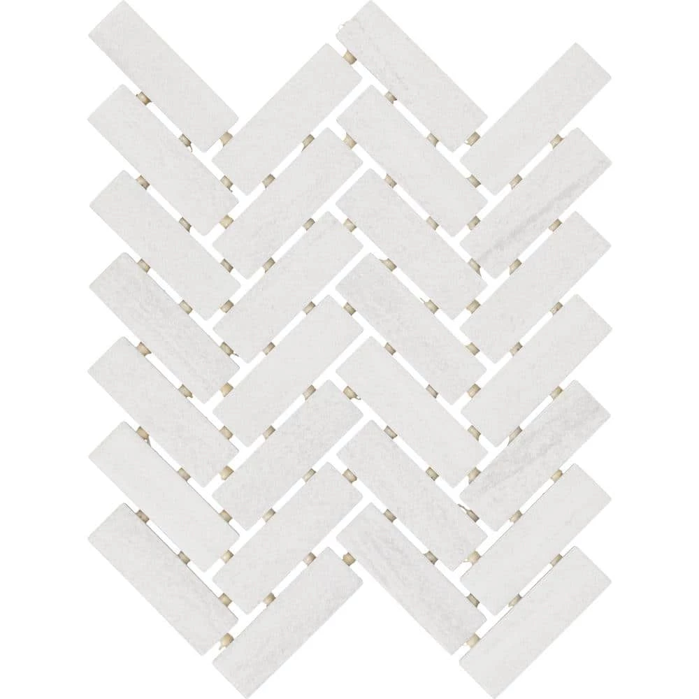 The Modern Renewal Parchment 1 in. x 3 in. herringbone mosaic tile creates a refined modern look. This ceramic mosaic pairs perfectly with the coordinating items in the Modern Renewal series. Its beautiful beige tones create an authentic stone look that can be used to complement a variety of design styles.