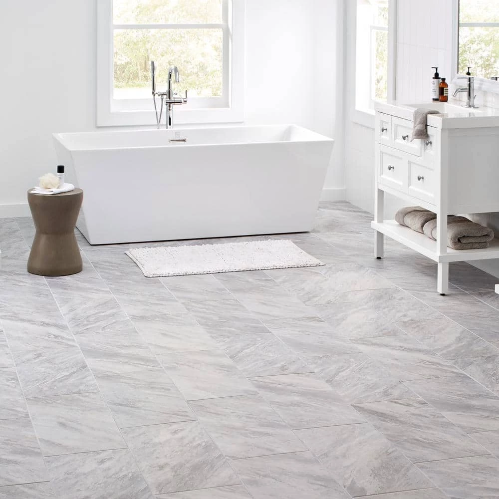 Enhance your space with the Newgate 12 in. x 24 in. Gray Marble ceramic floor and wall tile by Daltile. This soft gray marble look is great for both modern and traditional spaces. As beautiful as it is durable, this ceramic tile is waterproof, scratch- resistant, and stain proof. Use it in your kitchen, bathroom or entryway.
