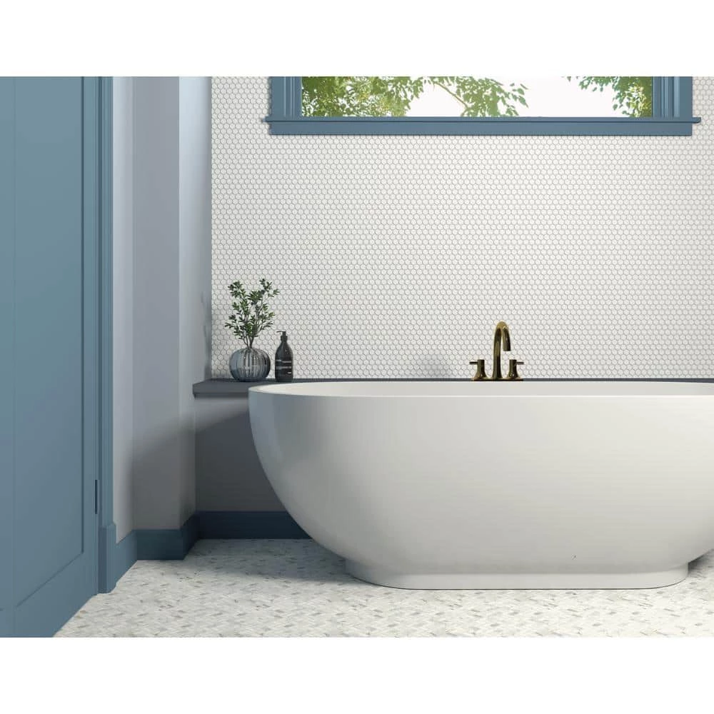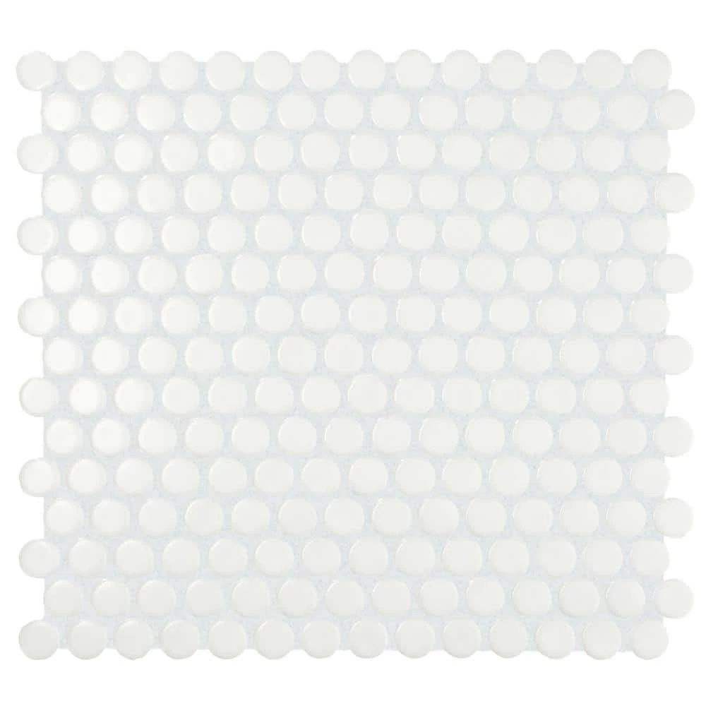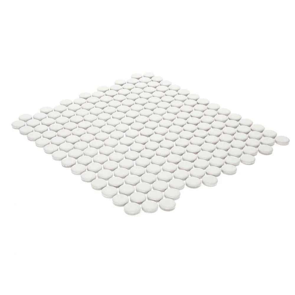 This durable penny round mosaic in satin white is perfect for backsplashes and feature walls in the kitchen, bathroom, shower and more. Its flexible design makes it suitable for many applications, and its unique texture adds dimension to any space. The Restore collection has multiple sizes and shapes to suit just about any ceramic wall tile project.