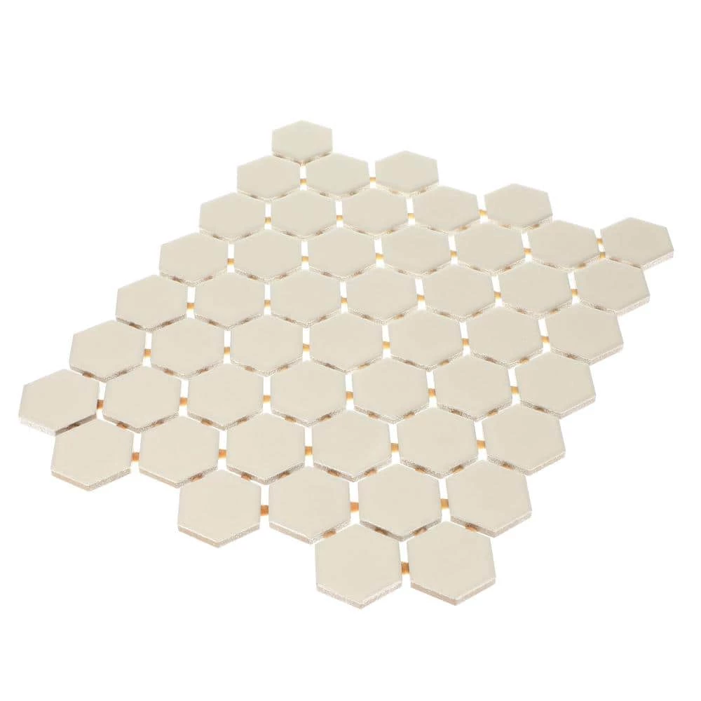 - Actual size: 10-1/4 in. width x 11-5/8 in. length x 1/4 in. thick; 1-1/2 in. hexagon mosaic pieces in a honeycomb pattern