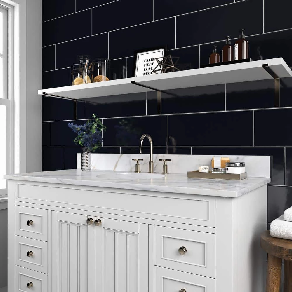 This large format, glossy 8 in. x 24 in. tile creates clean, contemporary lines on backsplashes and feature walls in the kitchen, bathroom and shower. It’s a traditional white ceramic wall tile in a new, modern color. Complete your project with coordinating tile in multiple sizes and shapes from the Restore collection for style, durability and easy care.