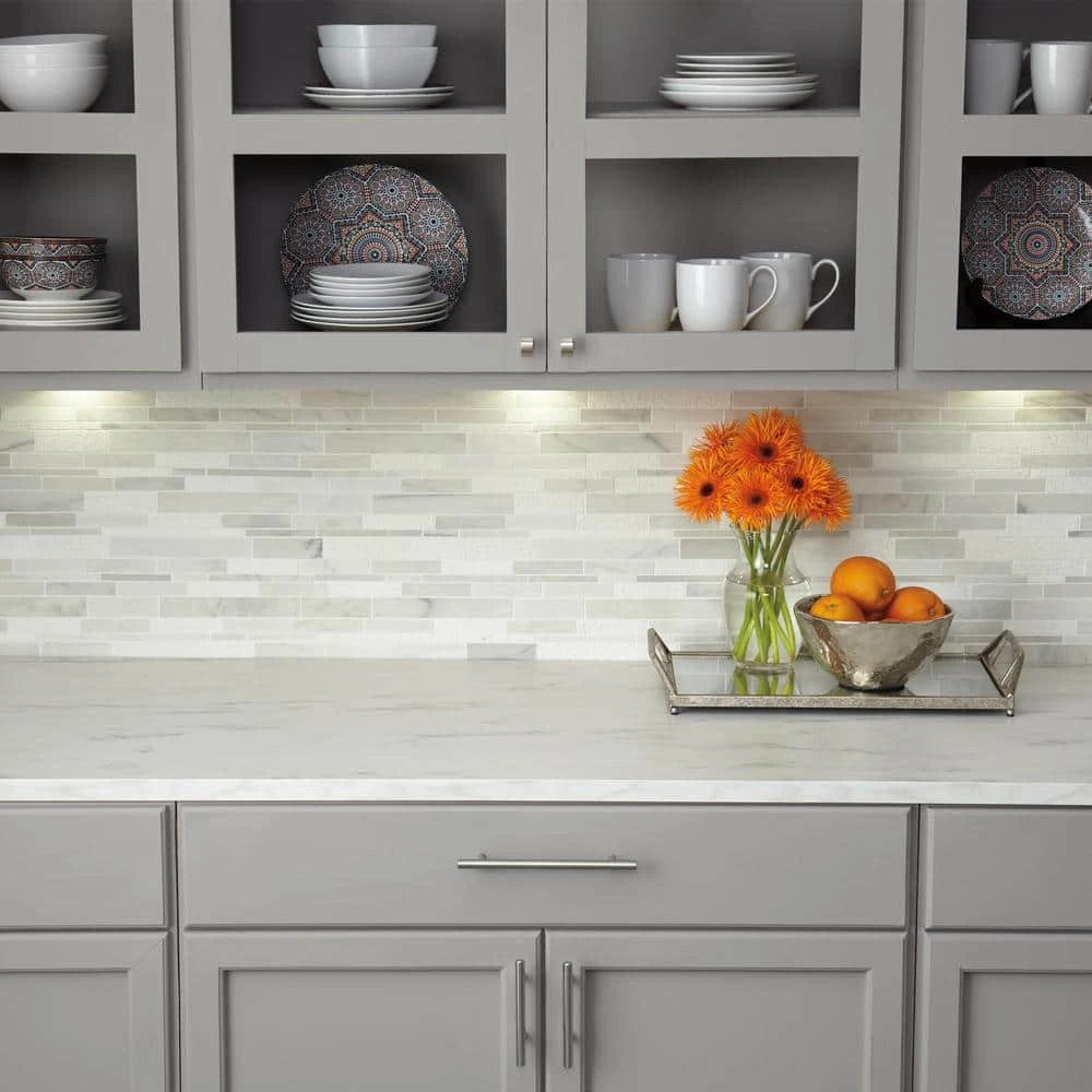 This beautiful 100% marble linear mosaic wall tile from Daltile is perfect as an accent in nearly any room. Following the trend of high end marble, this gorgeous mosaic is can be cut into strips and installed with coordinating tile. Use as a beautiful backsplash or accent on a bath wall. Classy, timeless and always trendy, marble tile can instantly give any room a high-end style.