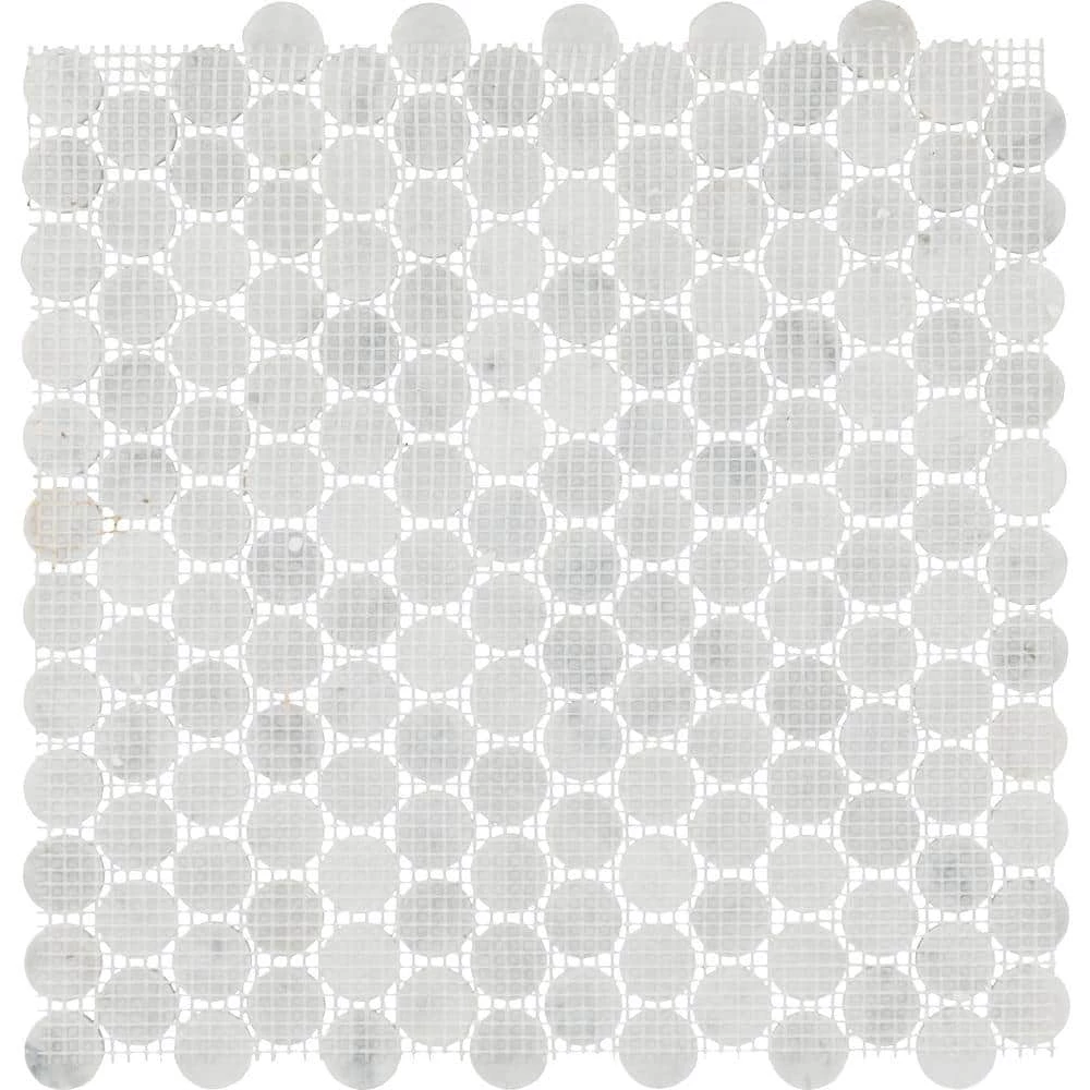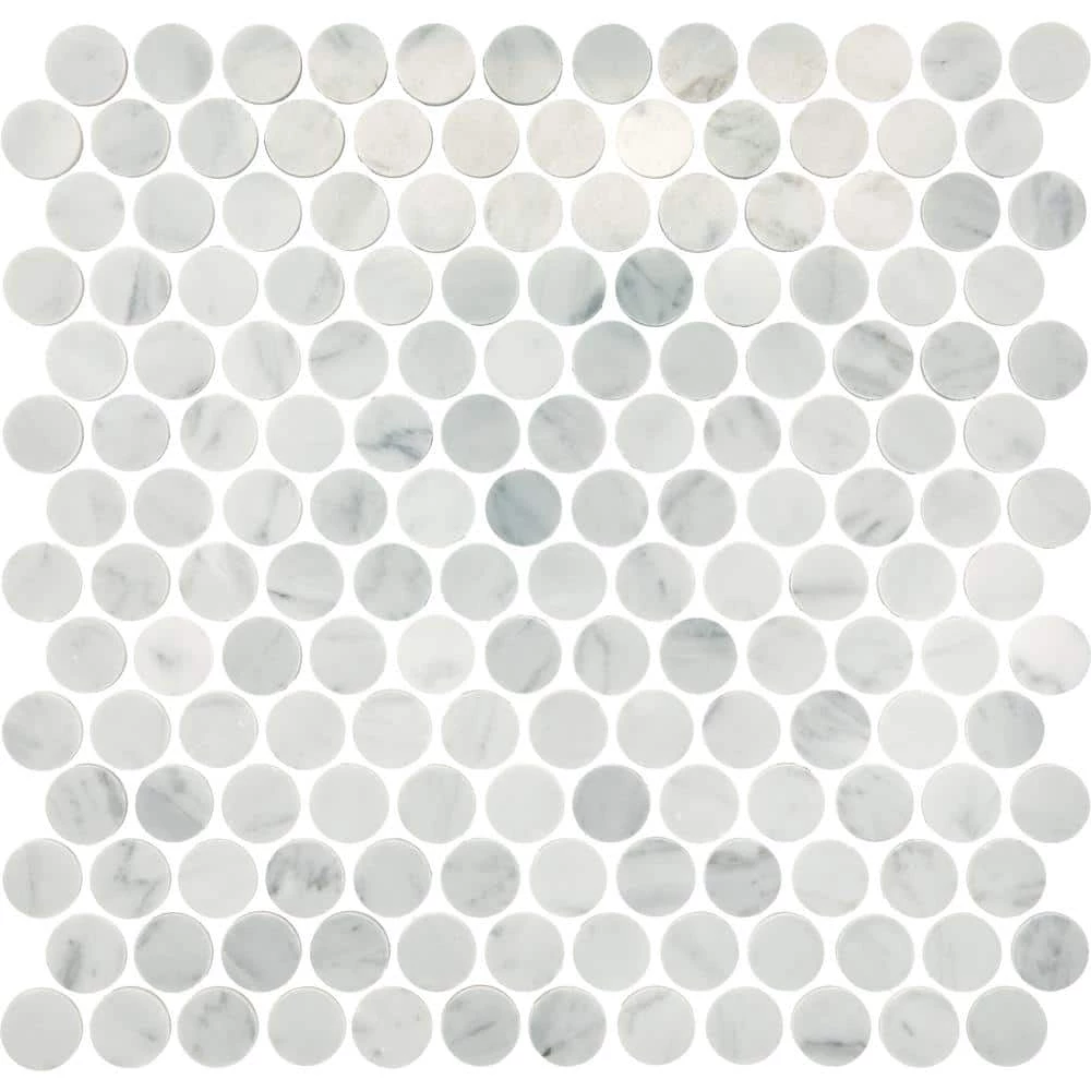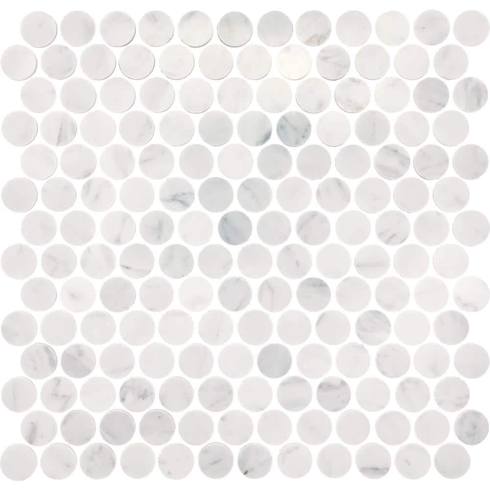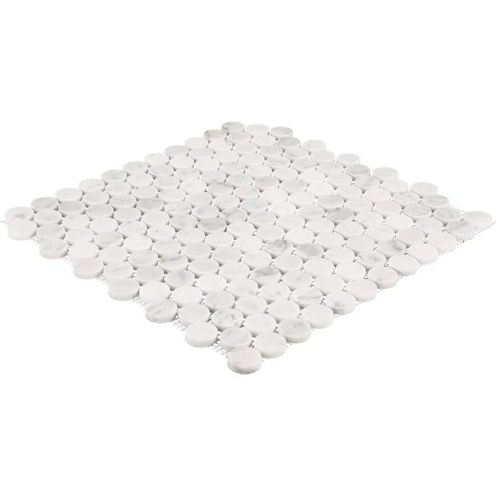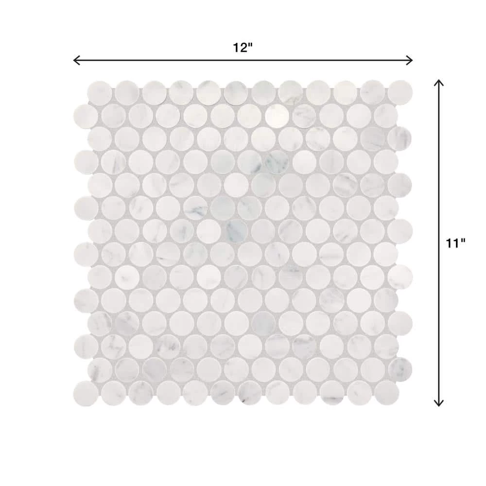 - Actual size: 12-1/4 in. width x 11-3/4 in. length x 1/4 in. thick; 7/8 in. W mosaic pieces in a penny round pattern