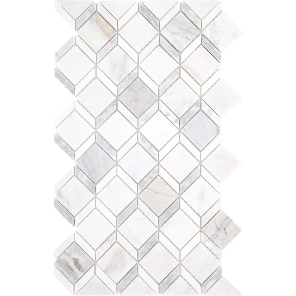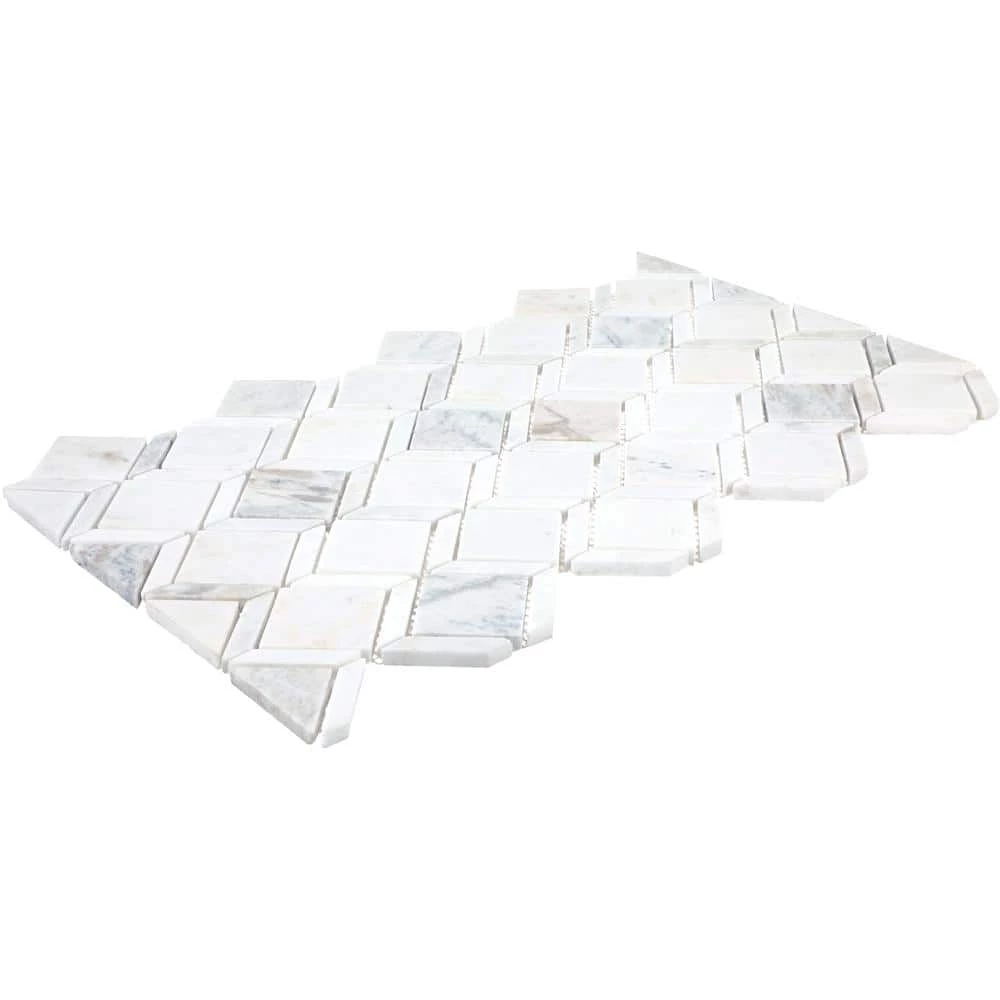 The Xpress Mosaix Perfect-Fit Mosaic redefines traditional tile backsplash installation. This marble geometric mosaic is designed to fit perfectly into the standard backsplash height of 18 inches. Measure your space, set the tile in place, grout, and go! The dynamic marbling throughout the stone and stunning diamond shape make this tile the perfect piece to complete your space. Use the Perfect-Fit Mosaic throughout your home in the kitchen, bathroom, coffee bar or even laundry room to get an elevated look.